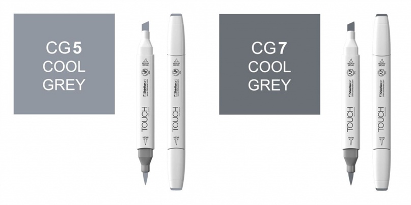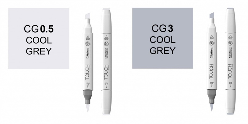 Холодно-серые Touch Brush: CG0.5 — серый холодный 0,5; CG3 — серый холодный 3; CG5 — серый холодный 5; CG7 — серый холодный 7: