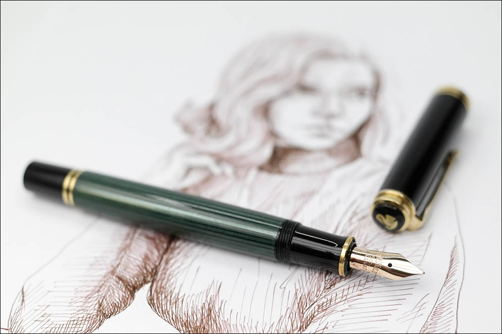 То, что современные пеликановские золотые перья, в отличие от стальных, традиционно толстят — к этому можно привыкнуть, но вот то, что ручка за более чем 500$ обладает пером с неидеальным кончиком, мне кажется, непростительно. Да, мы все знаем о проблемах компании, но такое отношение к своей продукции, которая исторически имела «высокое немецкое качество», ситуацию никак улучшить не может. В остальном система хорошая, добротная и надёжная, работает практически с любыми чернилами без проблем, а пластиковые фидеры — одни из самых лучших современных пластиковых фидеров.