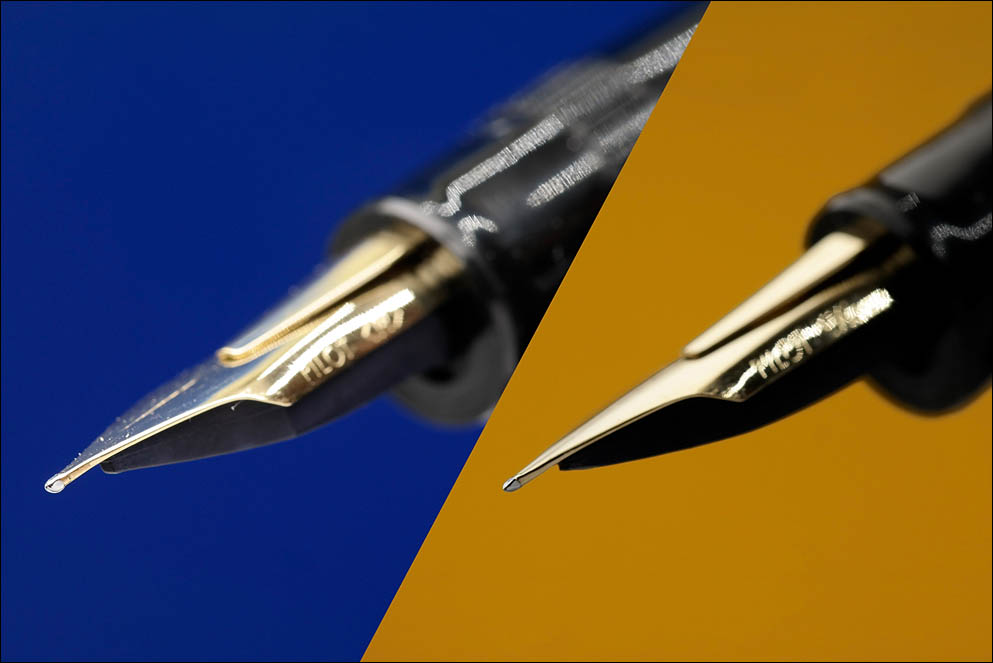 Вверху оригинальное перо размерности М, внизу — переточенное в UEF.