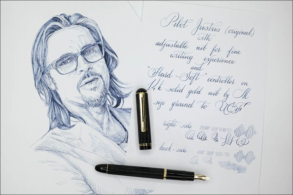 В начале июля я публиковал обзор на японскую ручку с регулируемым пером Pilot Justus первой редакции, так что не буду повторяться. Она понравилась мне безумно, но размерность пера была М. Японское М, соответствующее европейскому F... То есть не то, что подходит для рисования.