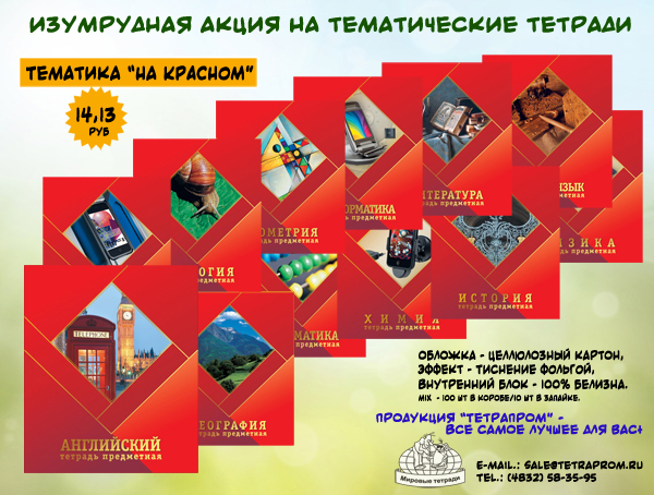 Изумрудная акция на тематические тетради «Тематика на красном»