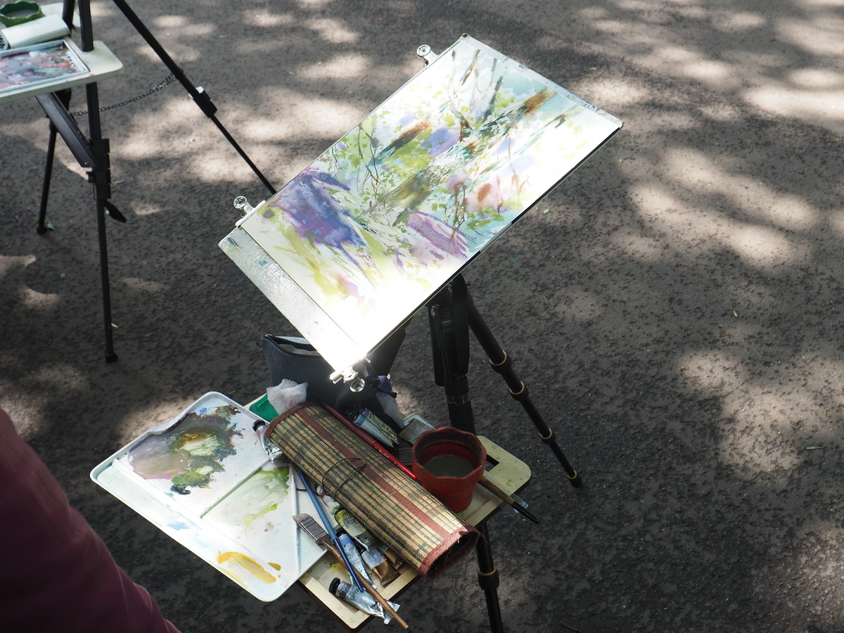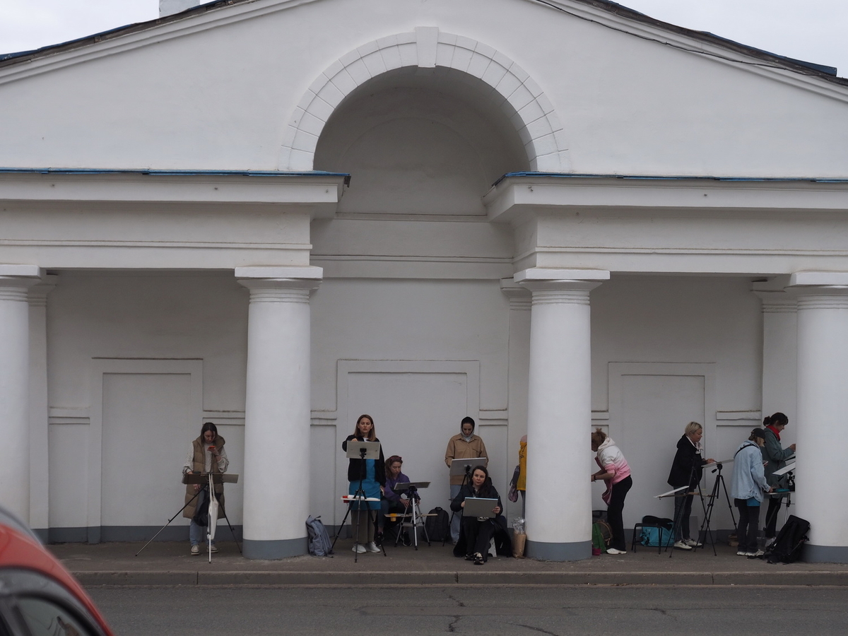 Пленэры начались спокойно: группы расположились под навесом, деловито расставляли этюдники, доставали инструменты, готовили краски. Тем временем небо вовсю намекало…