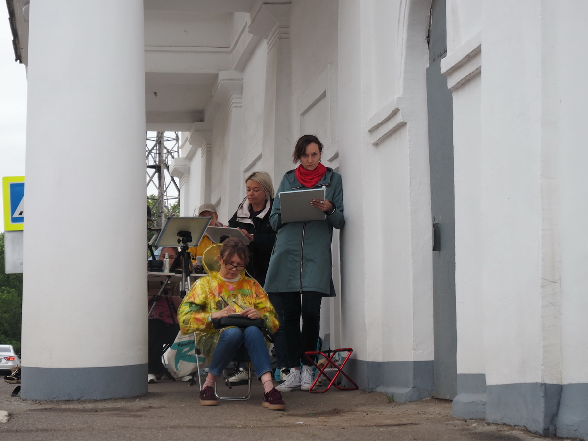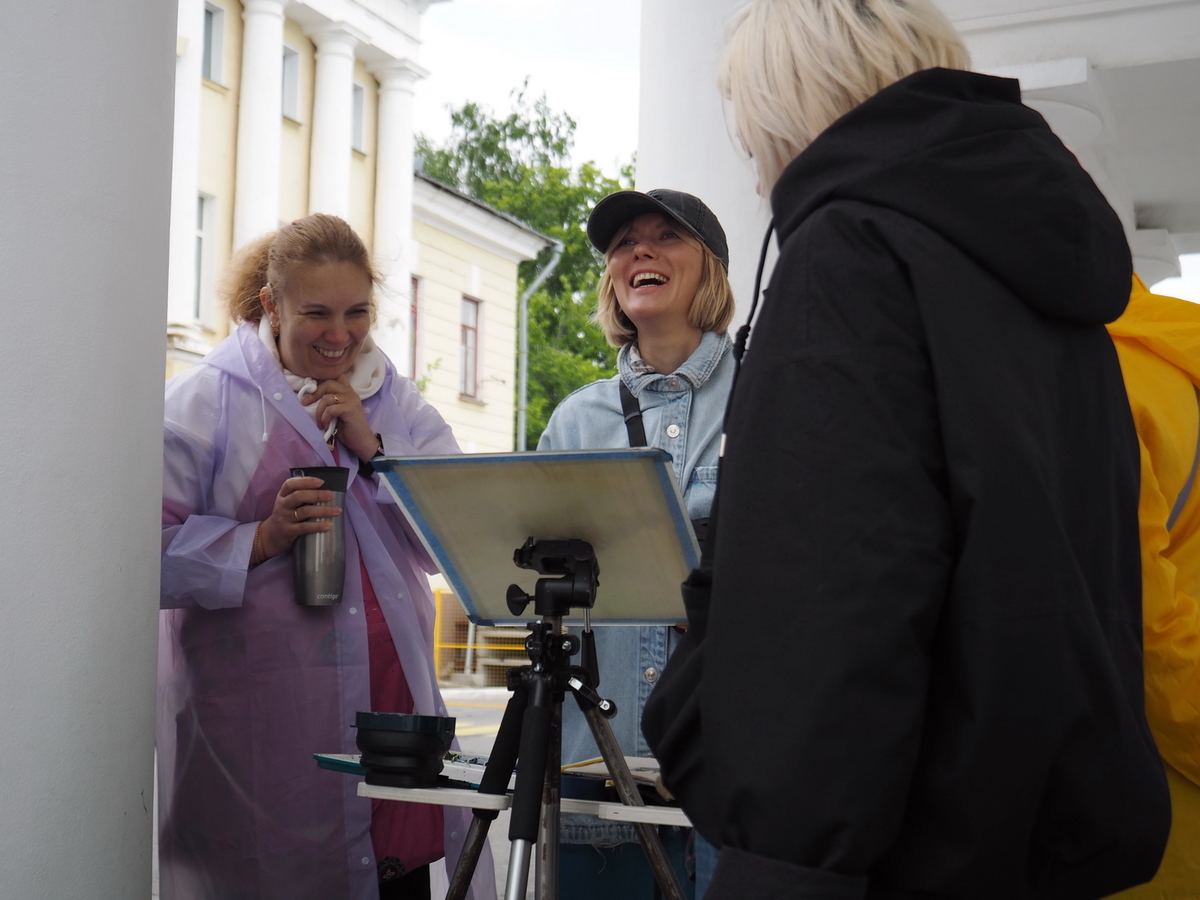 Наталья: Они все в очень большом волнении. Перед первым пленэром (мы же тут были за несколько дней до того, как всё началось) мы Киров сто раз пешком прошли, посмотрели локации. Девочки заранее проделали тренировку пленэров, потому что для мастеров, прежде чем подать материал в незнакомом месте, нужен был фундамент. А для приезжих [художников — прим. ред.] — тем более. Здесь же есть ещё и кировчане: они свой город увидели по-новому, под другим углом.
