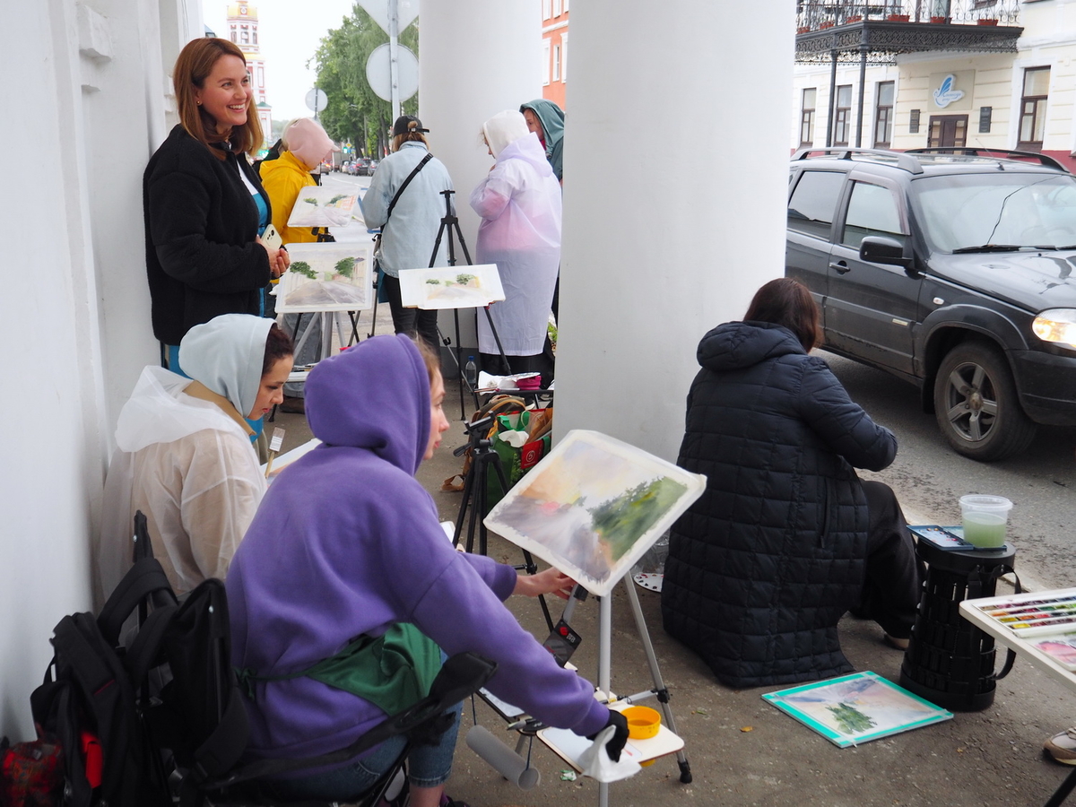 Планируя мероприятие задолго до его проведения, а идея родилась 10 месяцев назад, невозможно забронировать погоду или установить определённую температуру на улице. Так и случилось: в первый день пленэров Киров попал в объятия холодного ветра и мелко моросящего дождя. Да что Киров — на большую часть страны транслировалась такая погодная ситуация. Однако ничто не остановит художников, поставивших своей целью написать картину на пленэре…