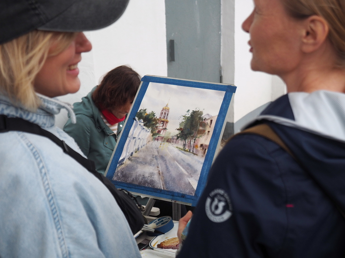 — Нет, мероприятия для акварелистов есть. Фестивали тоже есть. Но это первое мероприятие, сочетающее в себе мастер-классы, пленэры, экскурсии по городу и на производство на котором… (тут я как автор этого материала оставлю место для интриги, чтобы у читателей было больше поводов дочитать текст до конца).