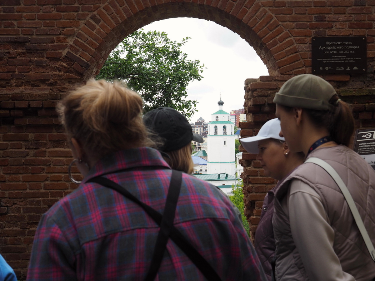 Сегодня Жанна Губина увела свою группу в заброшку, чтобы оттуда писать колокольню Свято-Успенского Трифонова мужского монастыря. Фишка, что делать они это будут через ещё одну кировскую достопримечательность — Арку Вятского кремля.