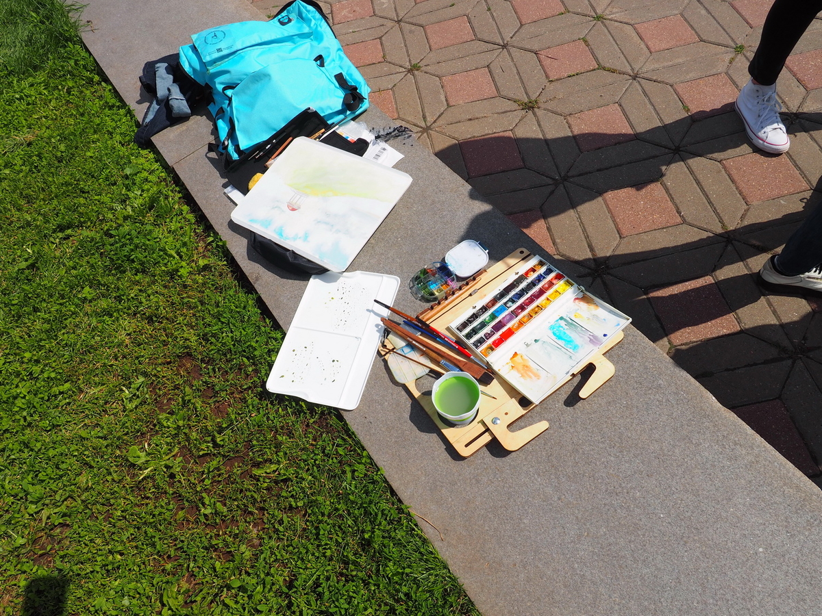 С сегодняшнего дня к Жанне Губиной и Софье Романовой присоединился ещё один пленэрист — Анна Чепурная-Олейник. Группы участников фестиваля чуток поредели, потому что перераспределились между художниками, а значит, каждому из оставшихся досталось ещё больше внимания. Хотя и так грех жаловаться на его недостаток. А вот то, что Анна привезла с собой свою технику рисования и свой взгляд на творчество, — факт.