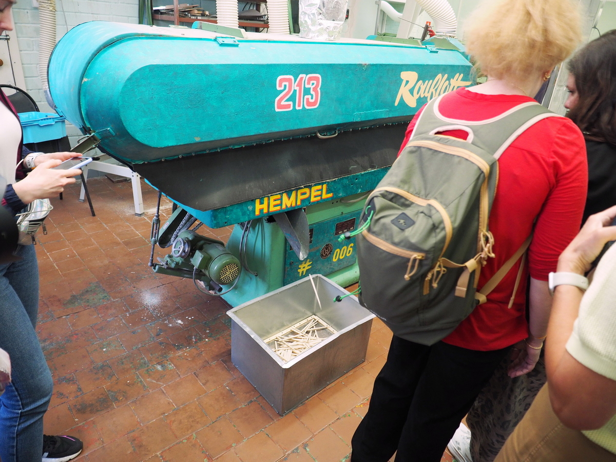 Следом мы буквально на секундочку заскочили на участок подготовки волоса. Здесь прочёсывают, моют и калят натуральный волос, а также убирают волоски без вершинки. Именно по этой причине кисти Roubloff из натурального волоса так ценятся художниками всего мира. Однако время поджимало, поэтому долго побыть с сотрудницами, побеседовать, понаблюдать за их работой нам не удалось. И дальше началась гонка со временем, чтобы вернуться в запланированный тайминг.