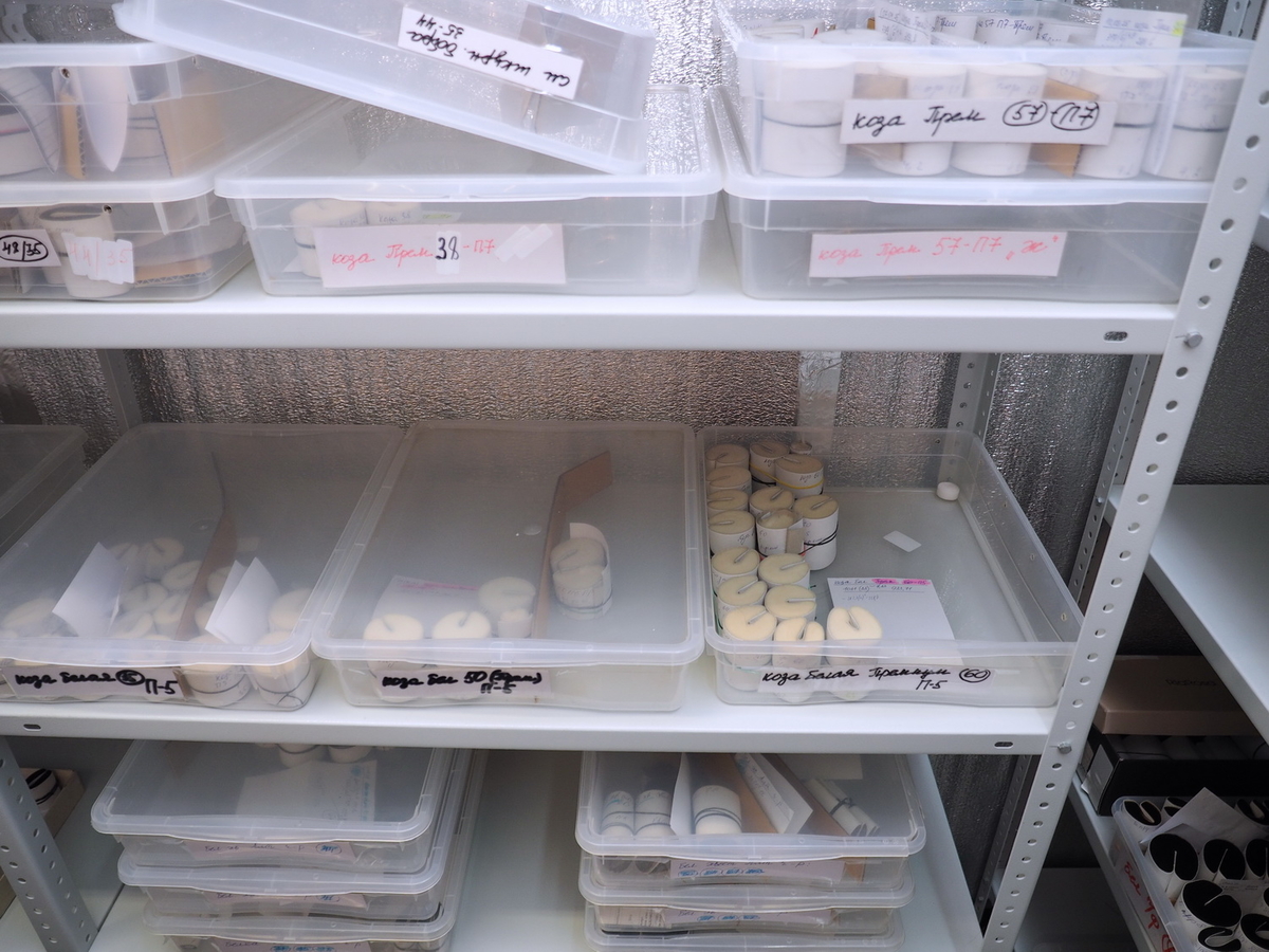 Комната хранения каталожных образцов: здесь лежат по несколько кистей каждого изготовленного на фабрике партии образца, чтобы даже через много лет можно было выяснить, что произошло с кистью с течением времени, а также повторить и изготовить точно такую же, как делали год или даже 10 лет назад.