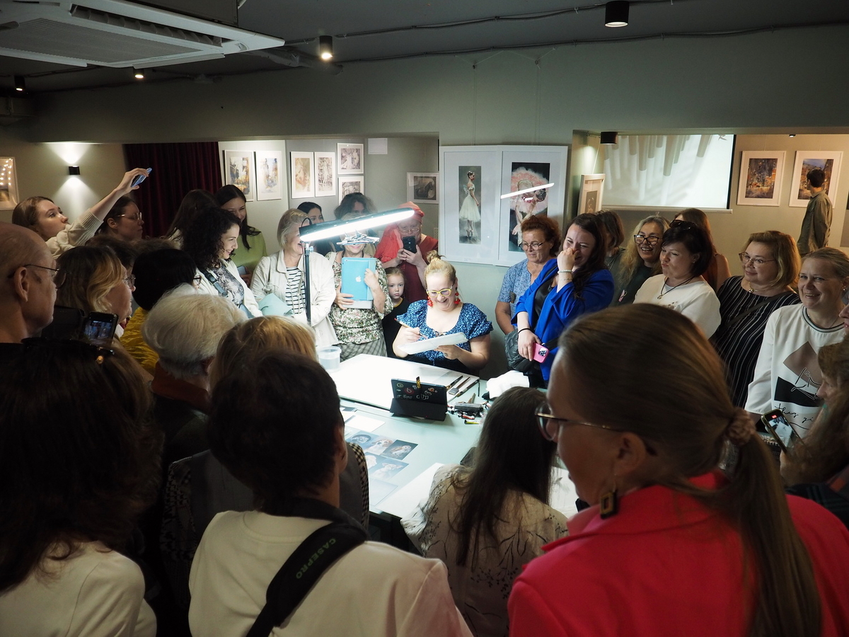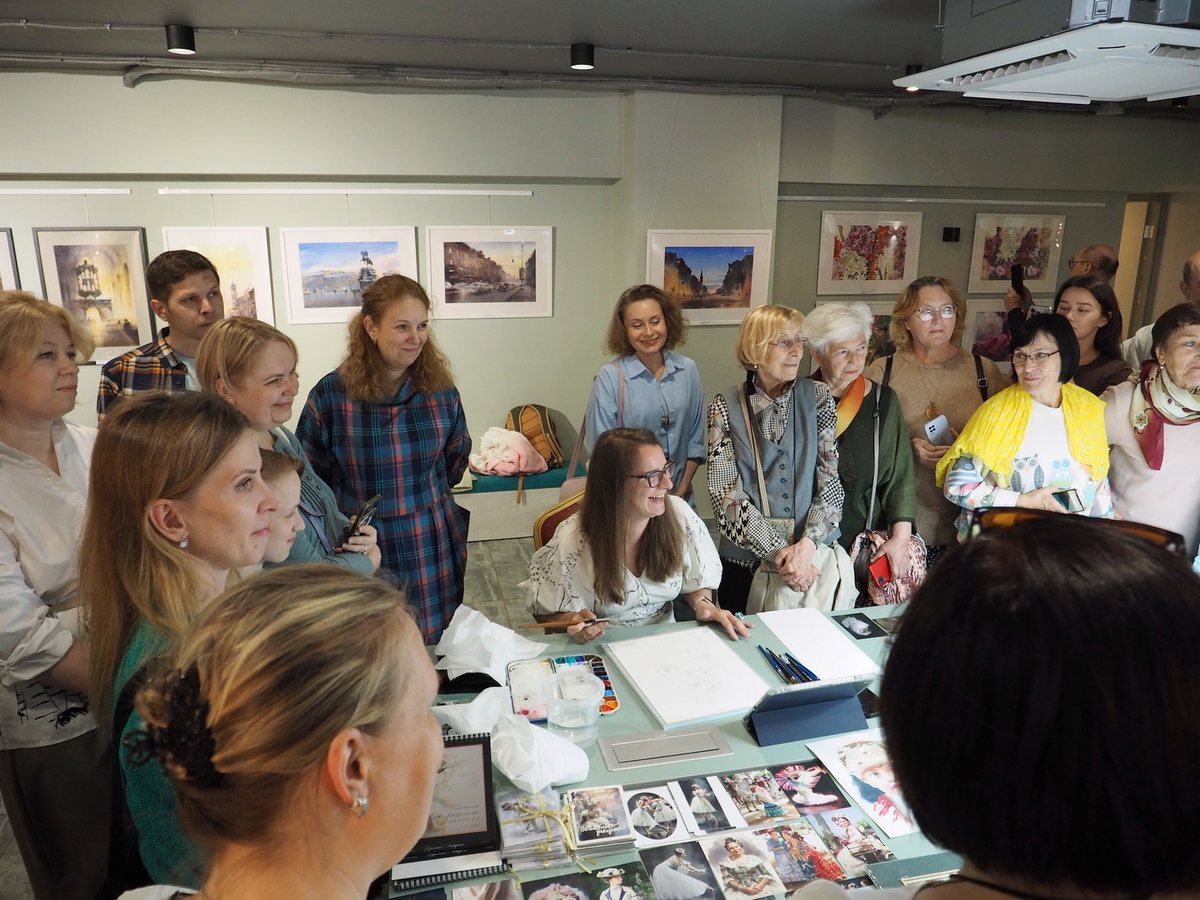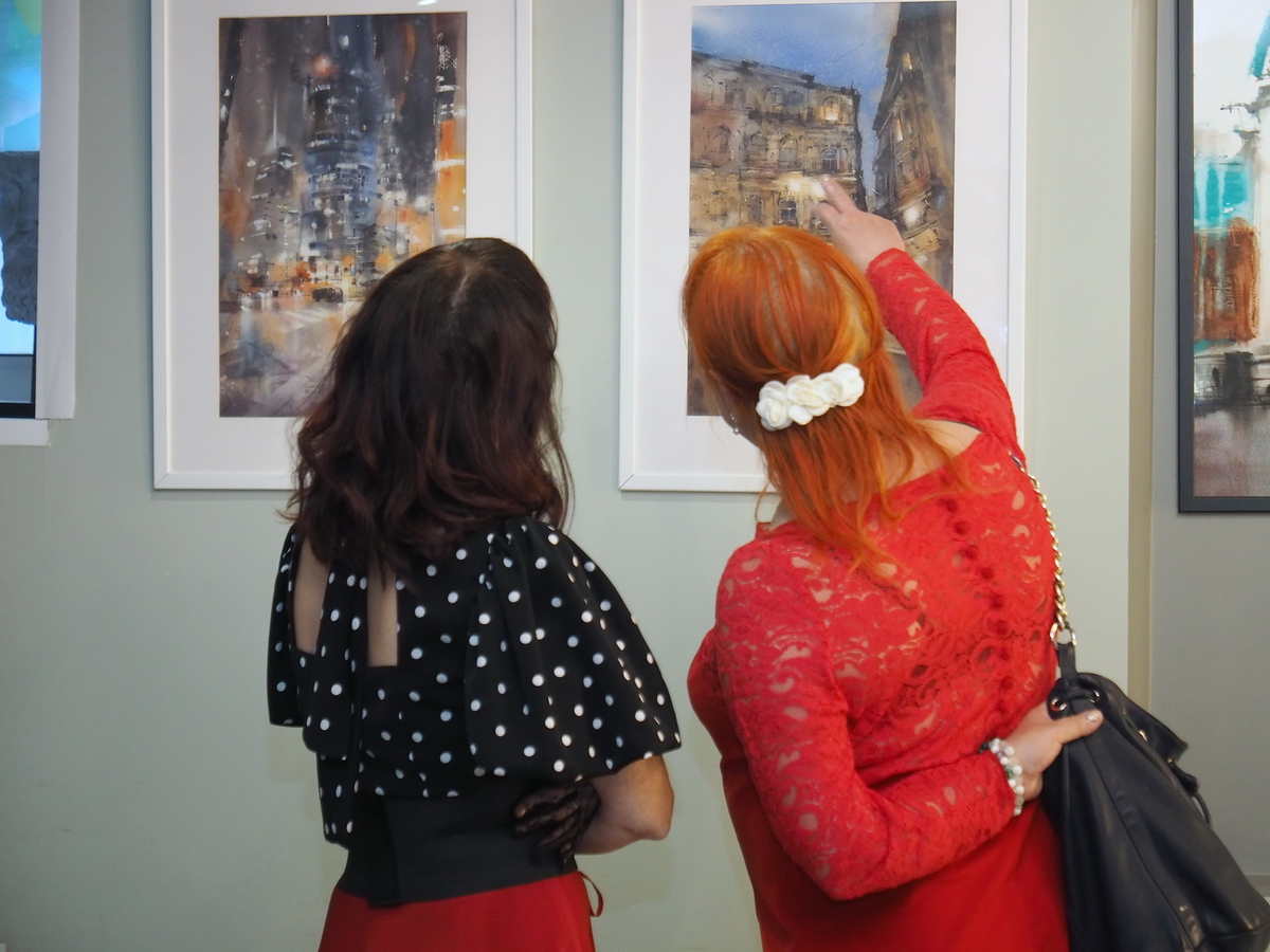 Следом за ним слово взяли каждый из приглашённых художников: Анна Иванова, Ирина Кукрусова, Жанна Губина, Софья Романова и человек, выступающий сразу в нескольких ипостасях, — художник-акварелист и эксперт компании Roubloff Татьяна Фролова.