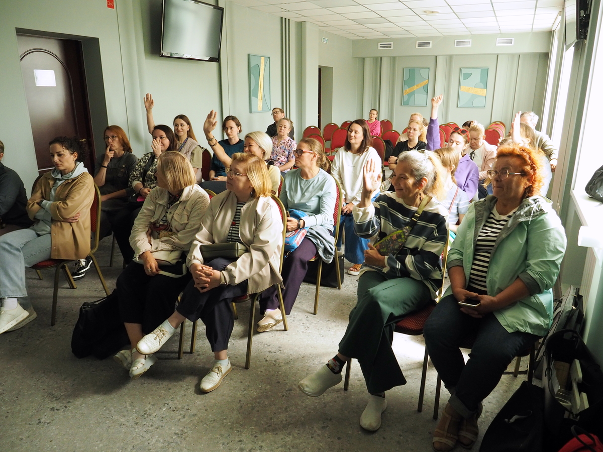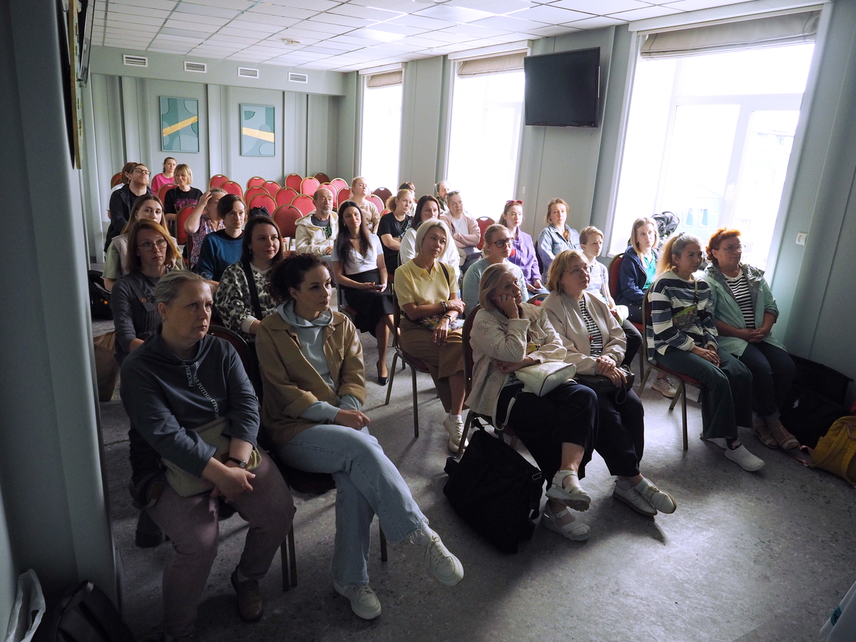 Анна Иванова и Ирина Кукрусова со своими группами участников расположились в импровизированных студиях — специально подготовленных для мастер-классов помещениях гостиницы «Чарушин». Анна заняла тестовую зону арт-холла, а Ирина разместилась в конференц-зале: везде тихо, светло, тепло и мухи не кусают. Красота!