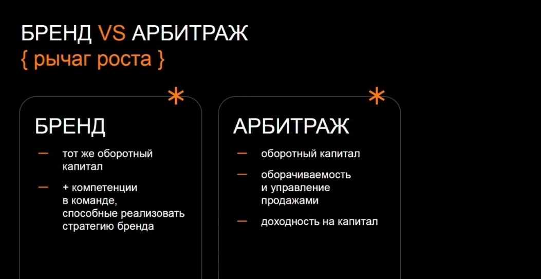 Для развития бренда крайне важна компетентная команда, которая может реализовать стратегию бренда. Для арбитражника — аналитика и выстроенное на её основе грамотное управление продажами, доходность на капитал на уровне SKU.