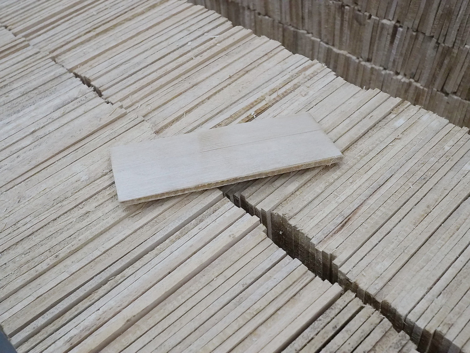 После сушки дощечки сортируют, отбирая негодные, а оставшиеся калибруют через станок. Это нужно для того, чтобы все дощечки были одинакового размера со строго перпендикулярными гранями.