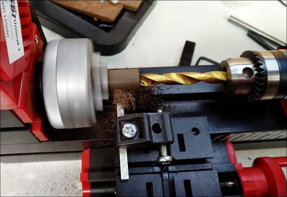 *а здесь Андрей вытачивает навершие из эбонита