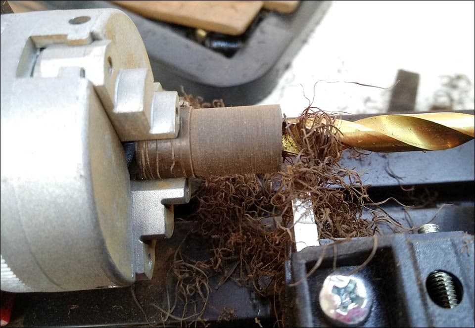 *а здесь Андрей вытачивает навершие из эбонита