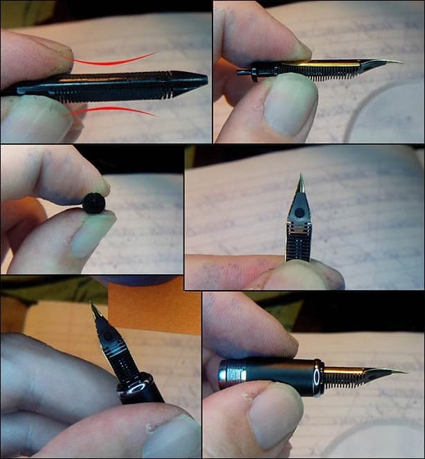 — Выше я уже частично раскрыл этот вопрос. Поскольку изначально интересовался только винтажными ручками, мне пришлось часто сталкиваться не только с ремонтом корпусов, но и с профилактикой и правкой перьев. Помню первые убитые мной перо и корпус. :) А ещё помню, как пробовал практически все советы из Интернета по доводке перьев — от полировки на матовых стеклянных кружках до крафтовых типов бумаг. :)