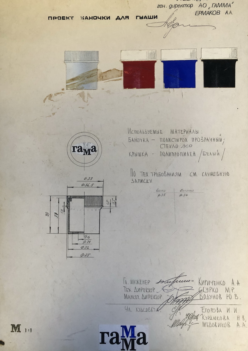 — По двум первым образованиям я профессиональный художник, график, иллюстратор. Выполнил иллюстрации более чем к 30 книгам зарубежной и отечественной литературы, включая классическую. Более 600 иллюстраций приобрело государство. Был членом Московского комитета художников-графиков и членом Международной федерации художников FIA. В 1993 году Александр Алексеевич Ермаков через знакомых пригласил в «Гамму» [ныне входящую в холдинг «Рельеф-Центра» — прим. ред.] делать упаковку к ТМ Yarka для поставок в Америку. Там же сделал первую в России баночку для гуаши с закручивающейся крышкой. Чертежи на планшетах находятся у меня в кабинете. Были ещё работы…