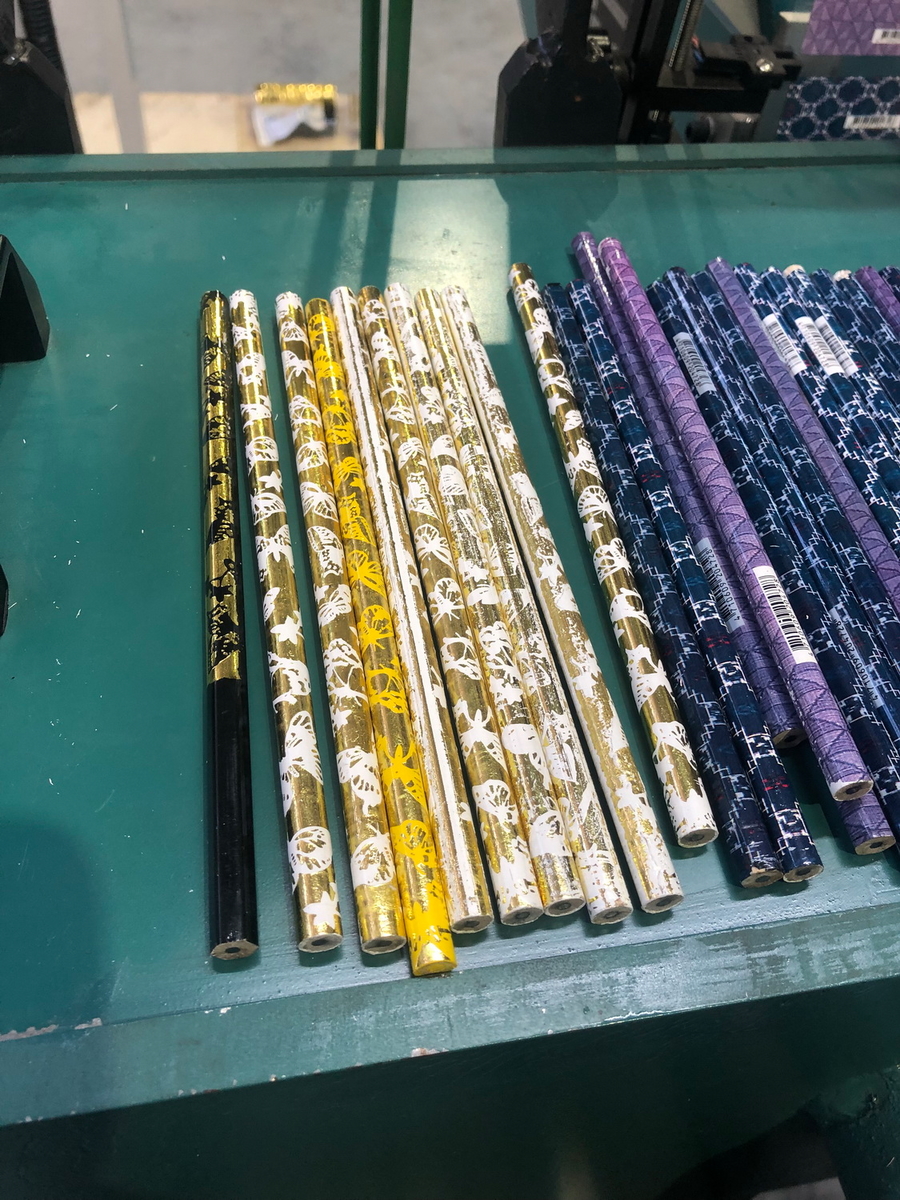 Технологически оборудованы, но есть ещё пара идей. Выпускаем карандаши трёх типов профилей сечений: стандартный — шестигранный, а ещё круглый и трёхгранный. Делаем их короткими, и конечно же, утолщёнными, но уже так полюбившимися — Jumbo. С ластиком и без. Освоили термоперенос рисунка с плёнки на карандаш (hot printing), так же, как и перенос рисунка с фольги…