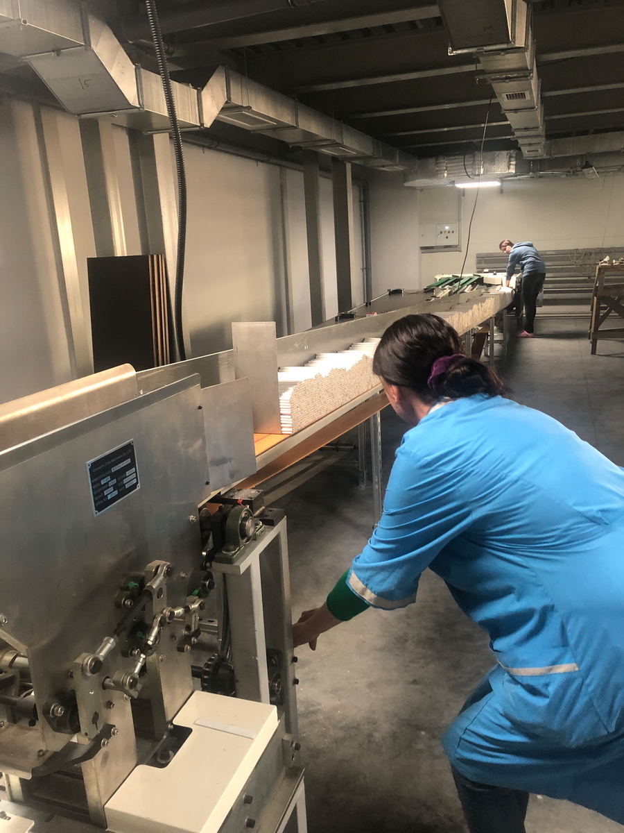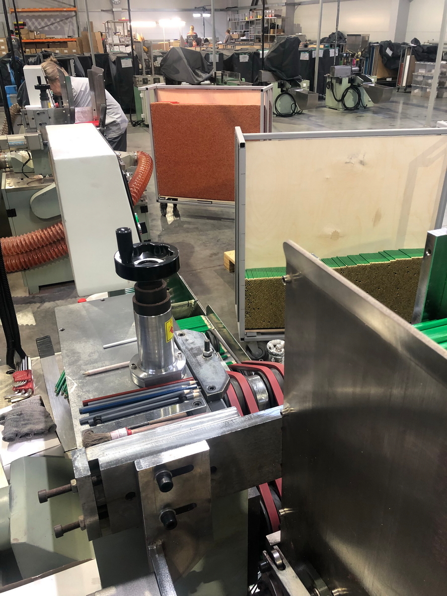 Мы начали осваивать оборудование, не от первого станка к последнему, а от последнего станка к первому, иначе из-за количества брака мы бы не дошли до упаковки — нечего было бы упаковывать. Это технология известной компании. Пошаговый процесс развития, семь уровней. Мы на третьем — сила в сфере компетенций, эффективности и постоянного улучшения качества. И количество брака заметно меньше, у меня есть с чем сравнивать, поверьте. Оттачиваем каждую операцию, двигаясь к самому началу — изготовлению дощечки.
