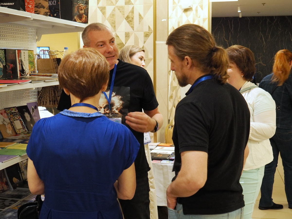 Вот почему отель «Москва» оказался находкой. Когда я только пришёл на конференцию, то выяснилось, что вместо одного привычного зала, условно поделённого на две части, два полноценных. В первом зале проходили презентации представителей компаний, а второй, довольно большой, использовали в качестве выставочного зала вдобавок с фуршетной зоной и столиками, чтобы можно было не только дела обсудить, но и передохнуть за чашечкой кофе или чая и закусками.