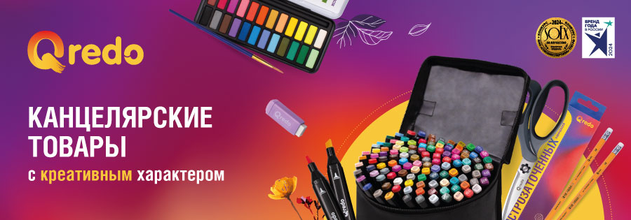 Начну с QREDO. Под этим брендом мы поставляем товары сегмента «средний» и «средний плюс». Ассортимент — офис и товары для творчества. Это товары очень хорошего качества, которые отличает особое оформление упаковки: мы выносим основные потребительские характеристики продукта, отличающие его от конкурентов, на упаковку в цифрах в виде измеримых фактов о товаре.