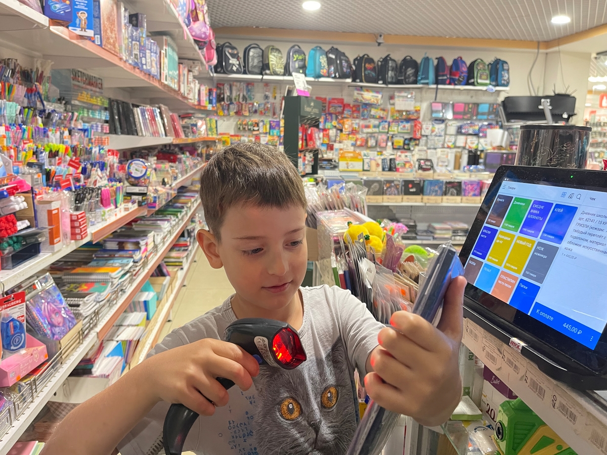 А сыночек мой любимый — да-а-а! Когда он приходит ко мне на работу, то сначала начинает просить у меня новый пенал или тетрадку. Потом видит кассу и умоляет «пробить товар» покупателю, я ему разрешаю. Всегда спрашивает меня: «Всё бесплатно можно брать?»