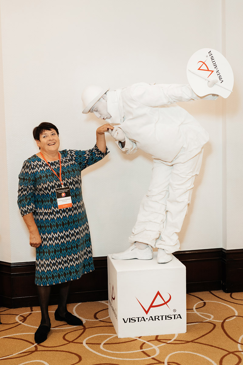 Во время перерывов между выступлениями спикеров конференции гости фотографировались со статуей бренда Vista Artista.