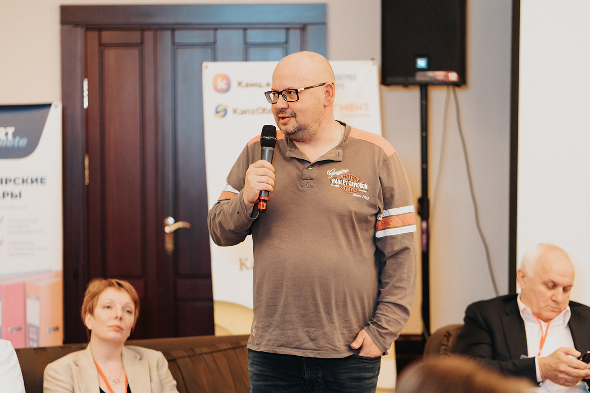 В итоге начали минут на 40 позже запланированного. Выступления, презентации и дискуссии начали сдвигать и сокращать их время. Надо отметить, что организаторы конференции готовились к дискуссии: заранее собрали наболевшие вопросы. Но из-за нехватки времени и половины обсудить не успели. На мой взгляд, получилось скомкано.