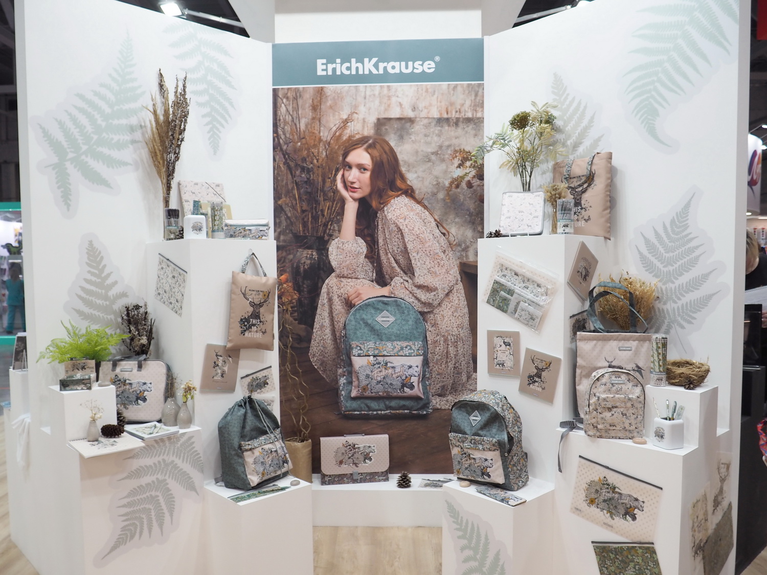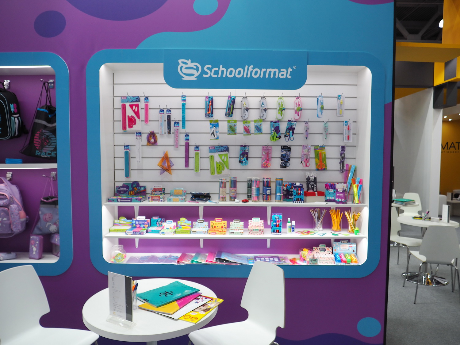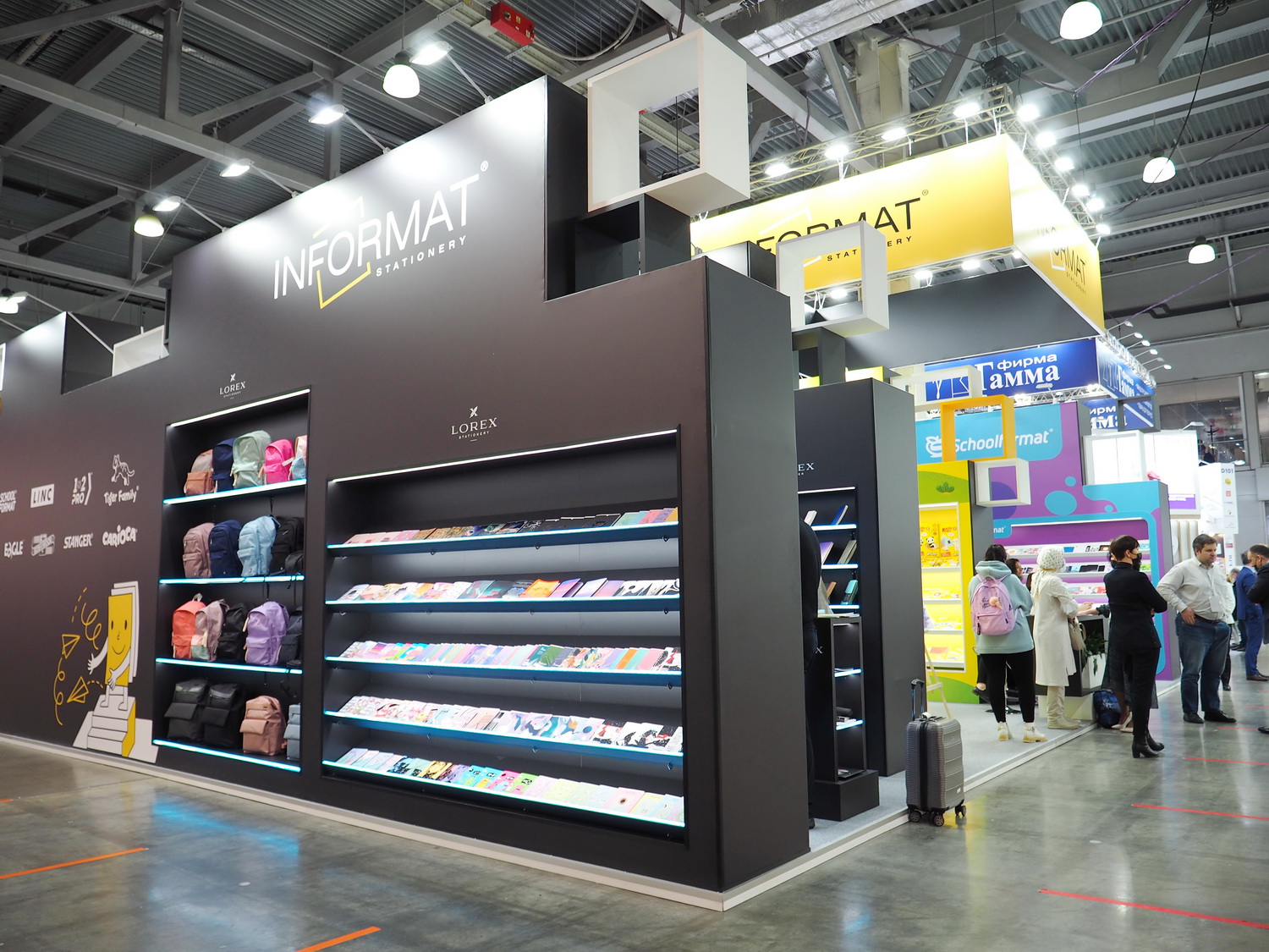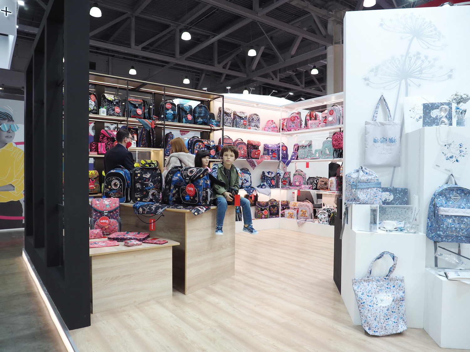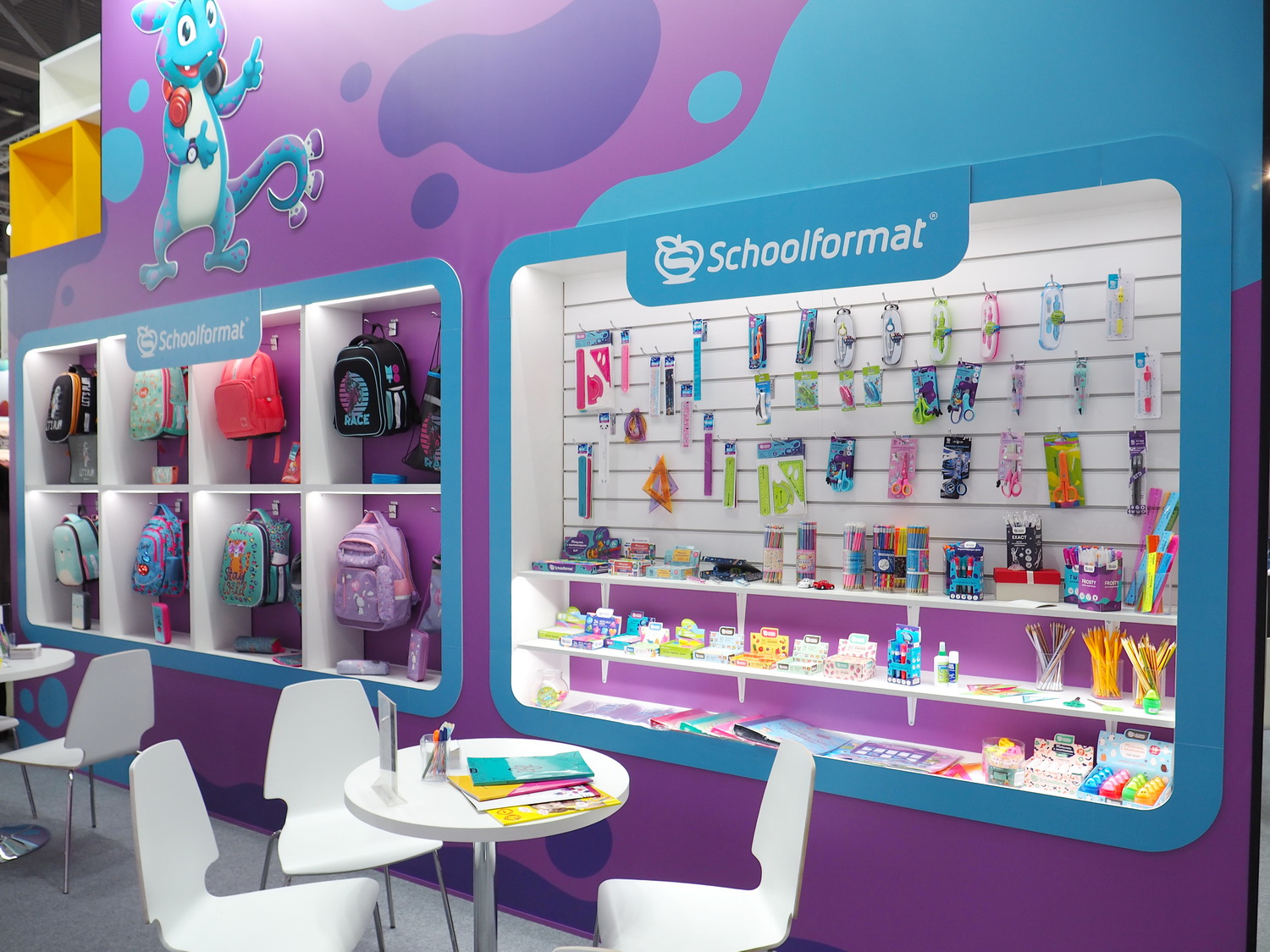 Стенд сегментированный и яркий. У компании разноплановая продукция: здесь выкладка офисного ассортимента, там — школы, тут — творчества. И пусть количество продуктовых групп не так широко, как, например, на стенде «Фирмы Гамма», но, возможно, их наполнение более глубокое.