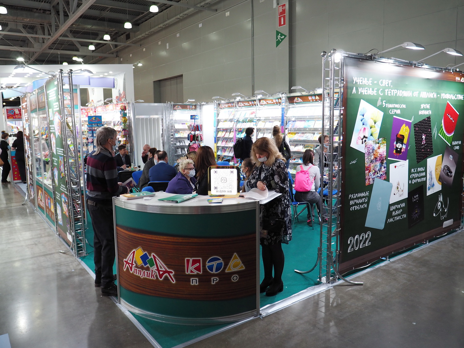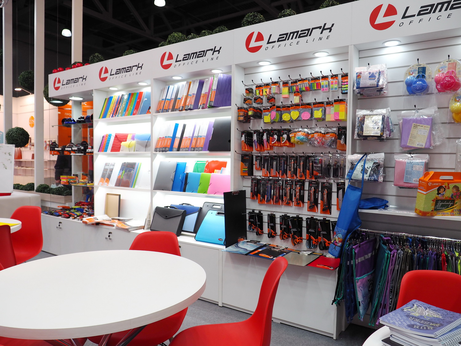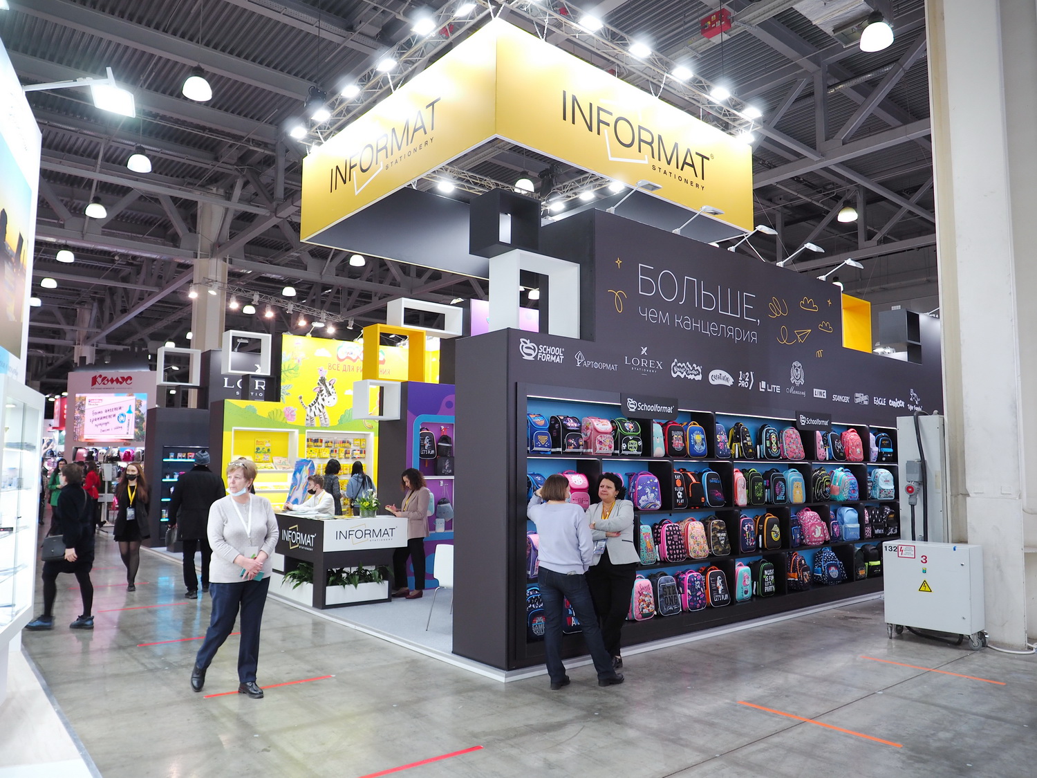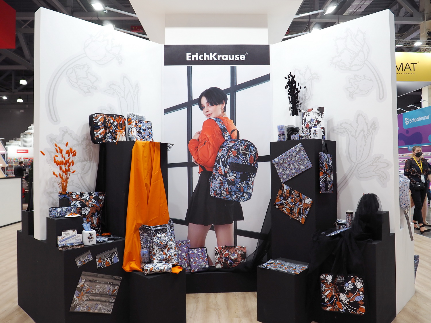 Стенд сегментированный и яркий. У компании разноплановая продукция: здесь выкладка офисного ассортимента, там — школы, тут — творчества. И пусть количество продуктовых групп не так широко, как, например, на стенде «Фирмы Гамма», но, возможно, их наполнение более глубокое.