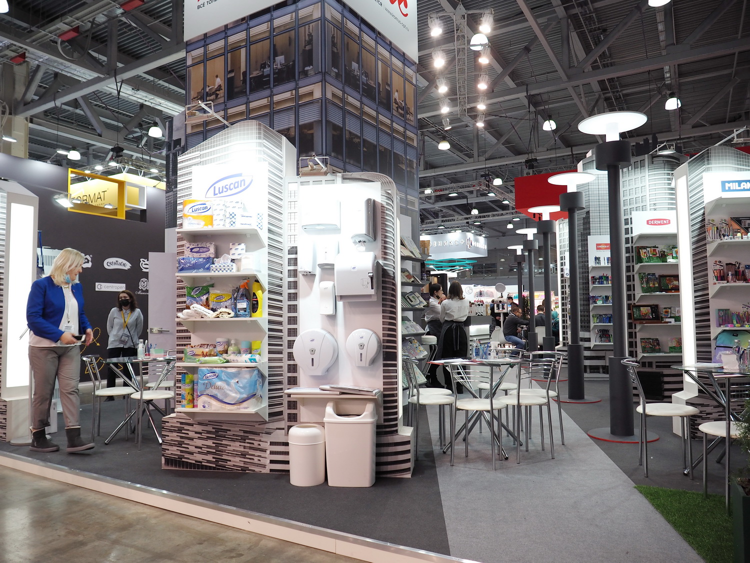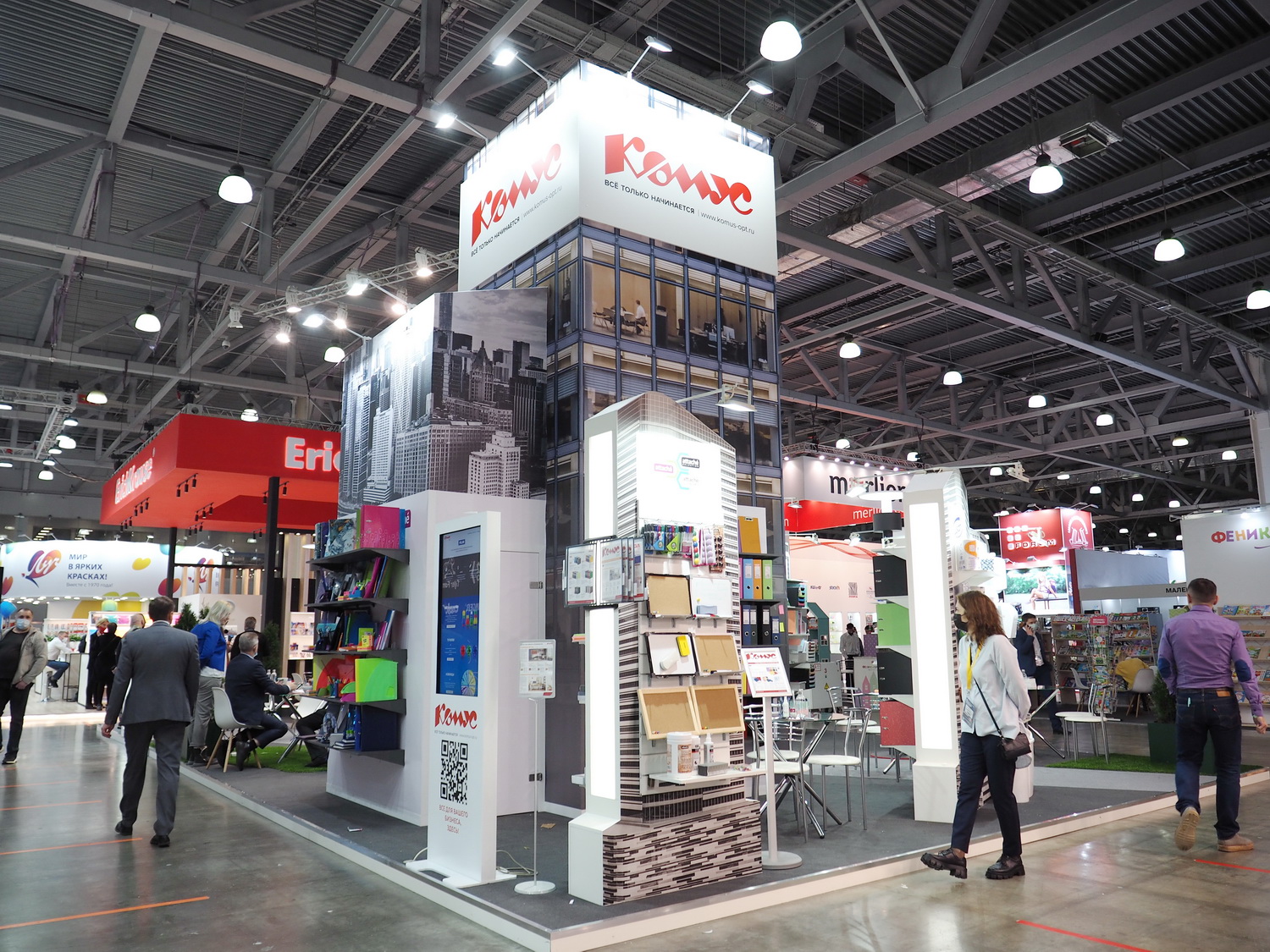 Небольшой город, выросший посреди выставки. На какую продукцию и целевую аудиторию делали упор — такой стенд и построили. Чёткое позиционирование и прицел на своих людей.