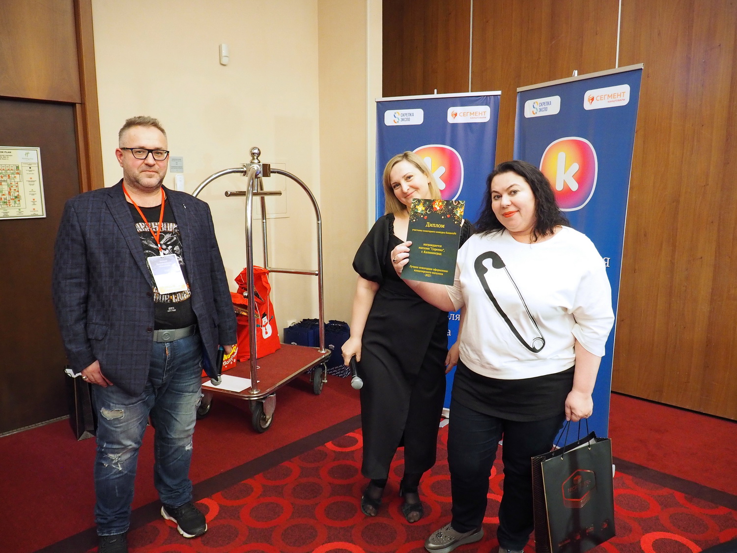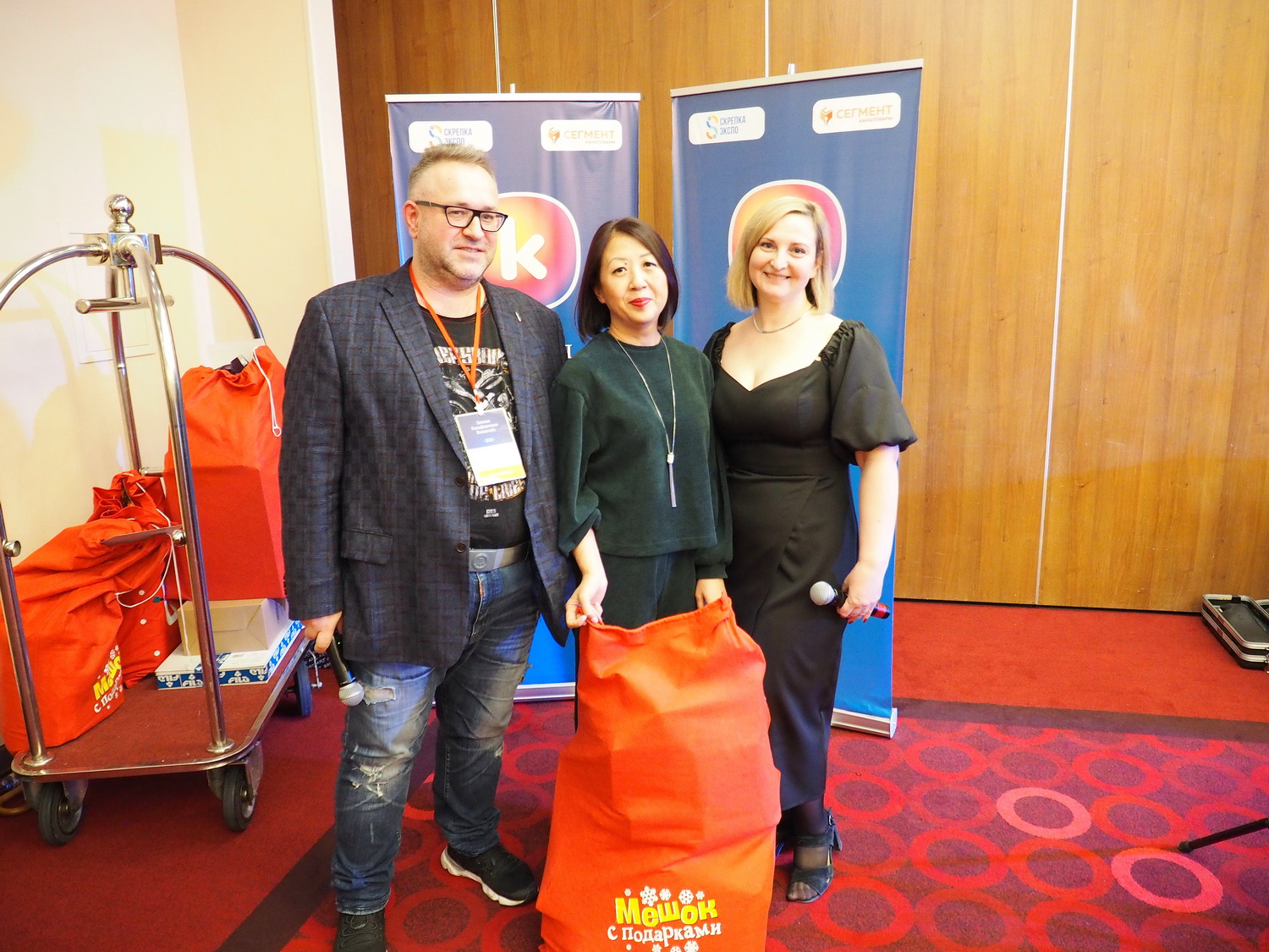 Так вот, на прошлой конфе мы уже провели подобный розыгрыш, он всем понравился и все остались довольны: без подарка не ушёл никто. Поэтому в этот раз сомнений не было — надо делать. Мы действовали быстро и слаженно: ведущие вызывали победителей, участвовавшие в лотерее поставщики вручали призы, фотограф (я) — фотографировал. Было весело, шумно, тепло и душевно.