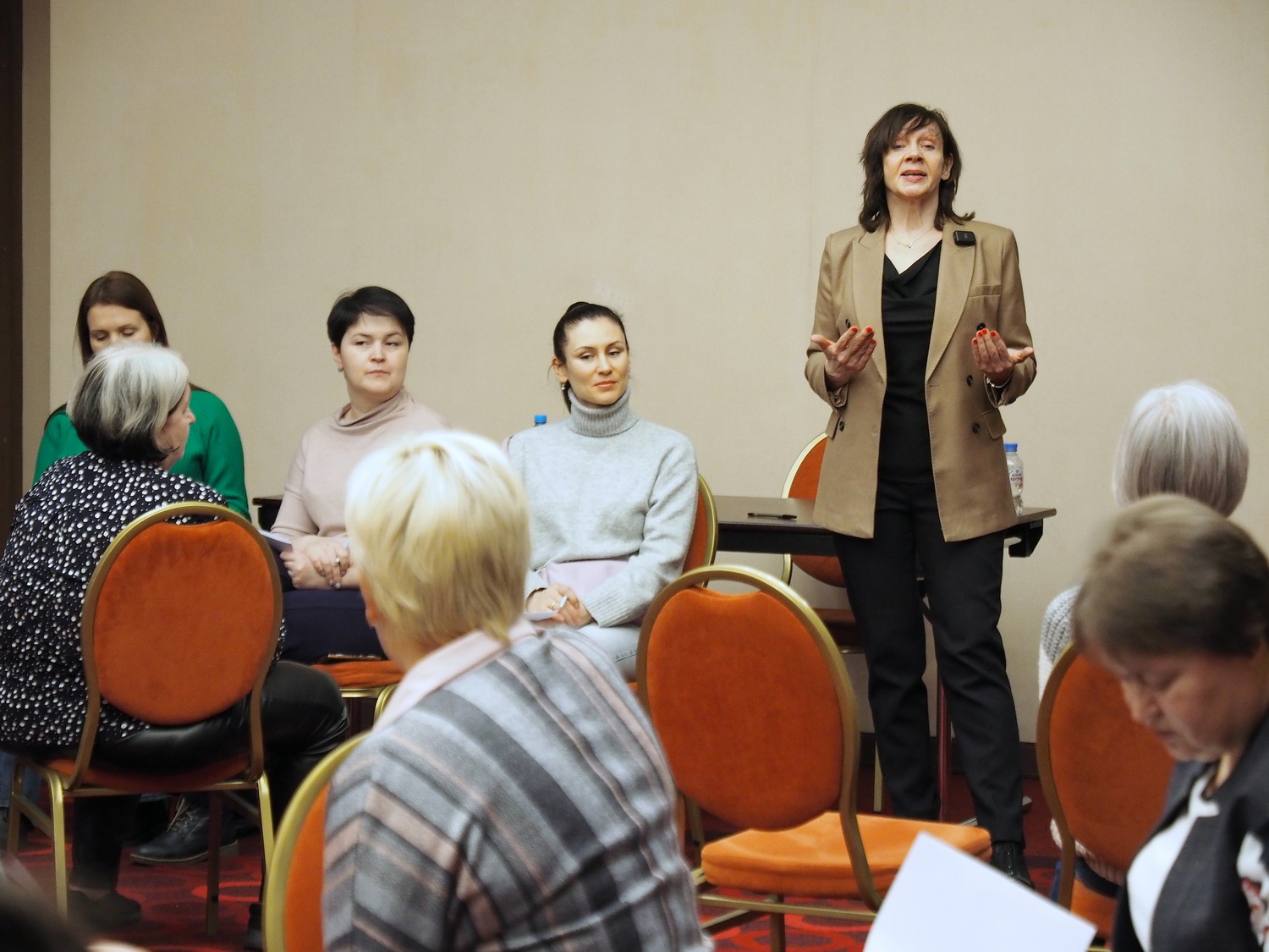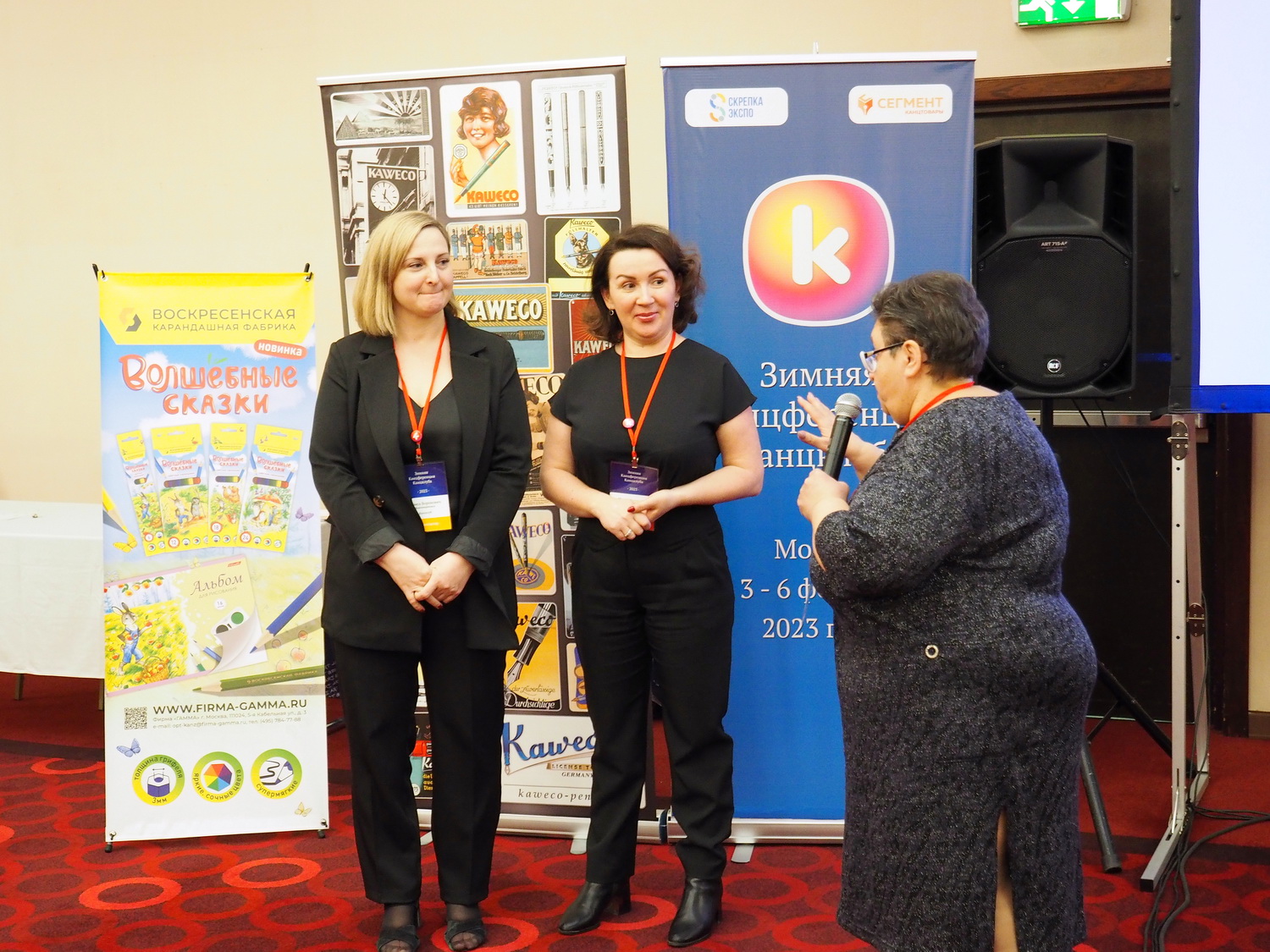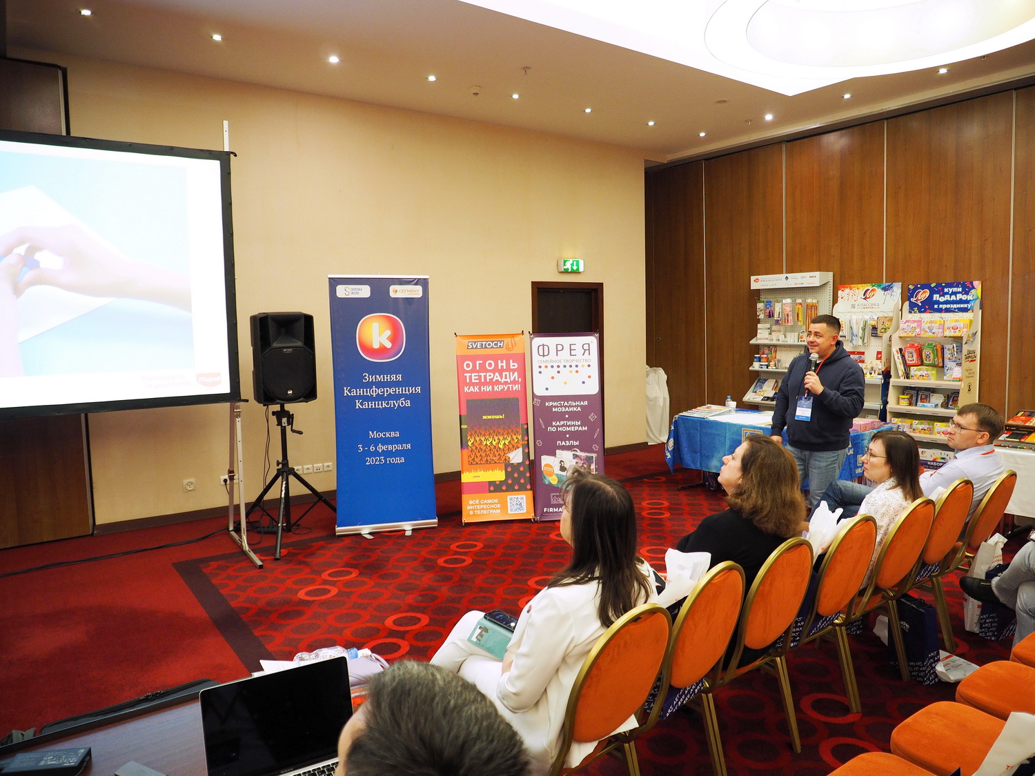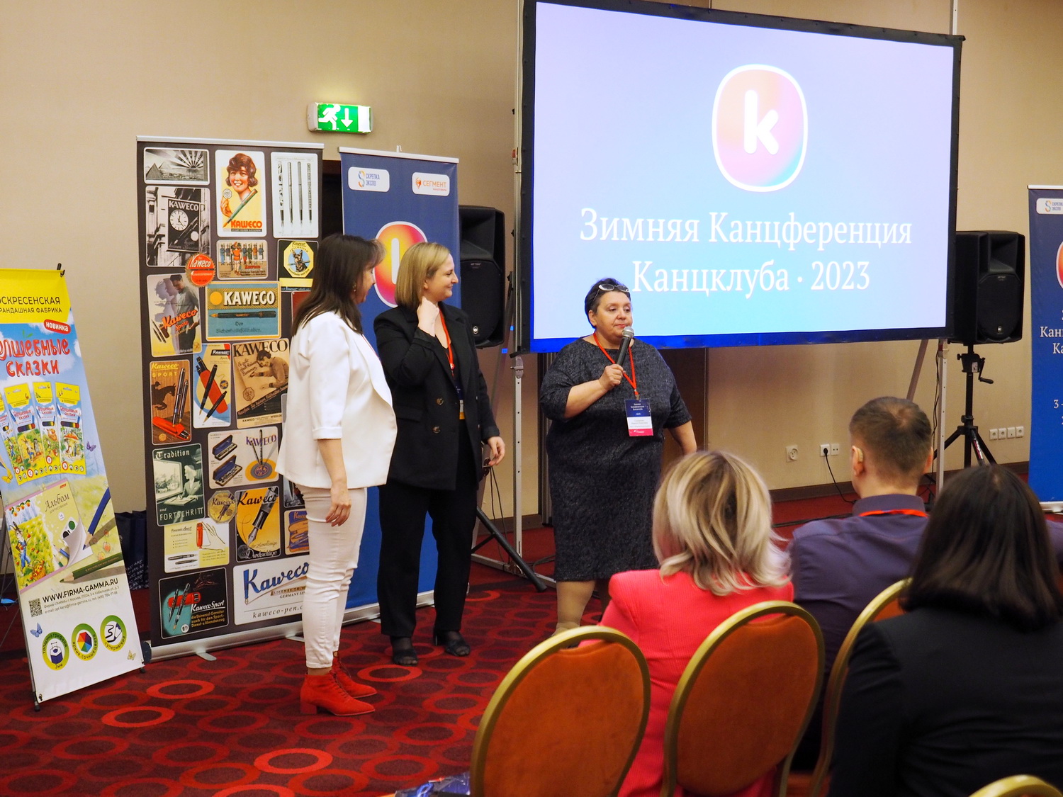 Отдельно хочу выделить… Да что хочу — выделяю выступление особенного спикера — Марины Борисовны Сидоренко, основателя проекта «Школа продавца канцелярских товаров». Она великолепна, кроме шуток. Между выступлениями представителей брендов, аккурат после обеда, была вставка с особой презентацией этой школы.