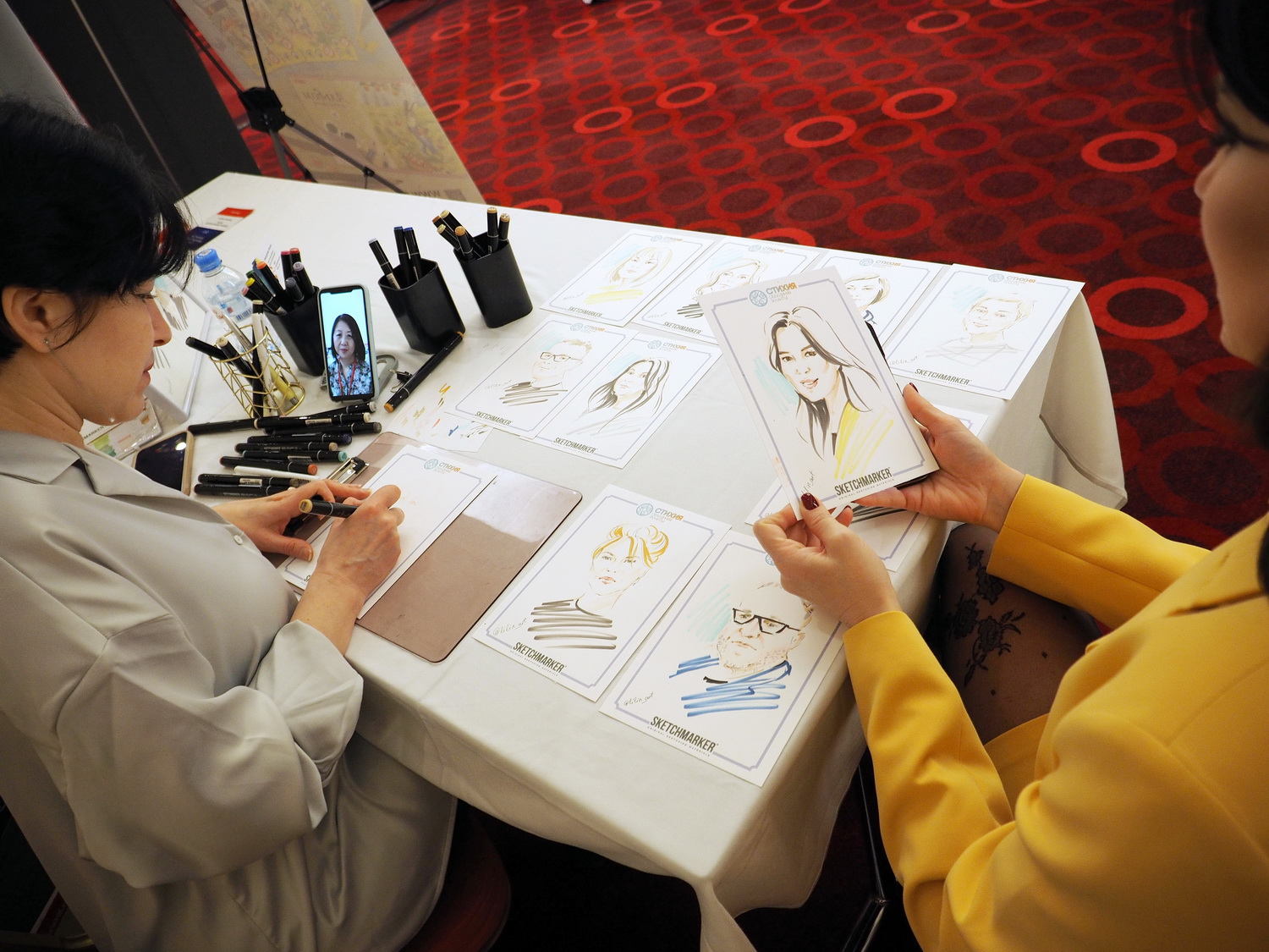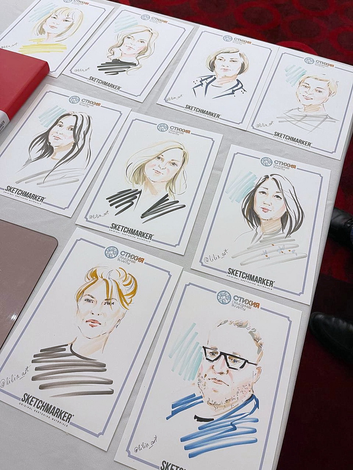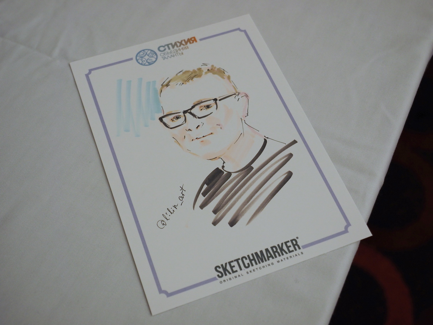 Подобные конференции помогают нестандартно подойти к продвижению продукции и её демонстрации. Например, в этот раз компания MPM Art пригласила художницу Лилию Насырову (lilia_art), которая показывала возможности маркеров для скетчей Sketchmarker, рисуя портреты участников конференции.