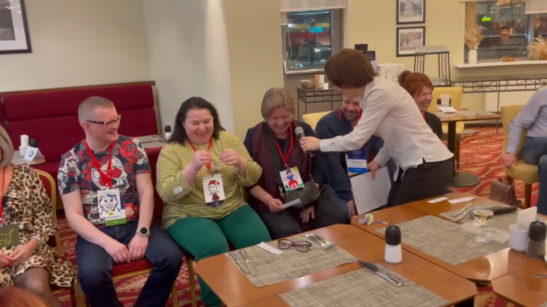 Регулярное повторение заученных фраз, тёплая атмосфера и абсурдность происходящего окончательно растопили вечную мерзлоту самых крепких интровертов конференции. В конце, когда милая маленькая мышка, а по совместительству почти двухметровый мужчина Роман «КотикКотик» Юдин (зацените иронию) глубоким грудным басом протяжно произнёс: «Пи-пи!» — остаток его фразы уже было не разобрать, потому что зал взорвался хохотом, да таким, что лежала вся маршрутка. Кстати, его фраза целиком звучала так: «Пи-пи! А персонал-то не оценили!»