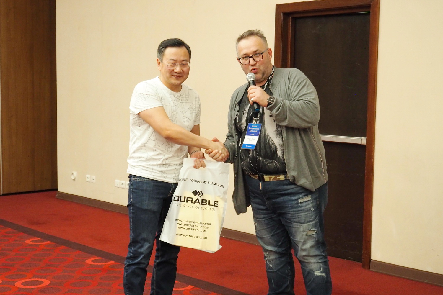 Когда эмоции улеглись, все подкрепились, подошло время для знакомства. Каждый, кого объявляли, выходил к ведущим, получал бейдж и вкратце рассказывал о себе, достижениях в бизнесе и ожиданиях от конференции.