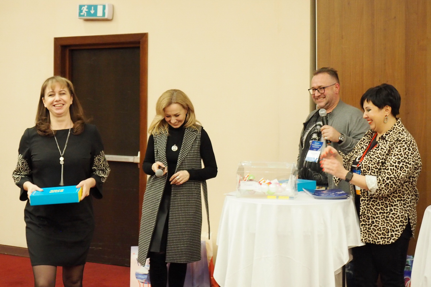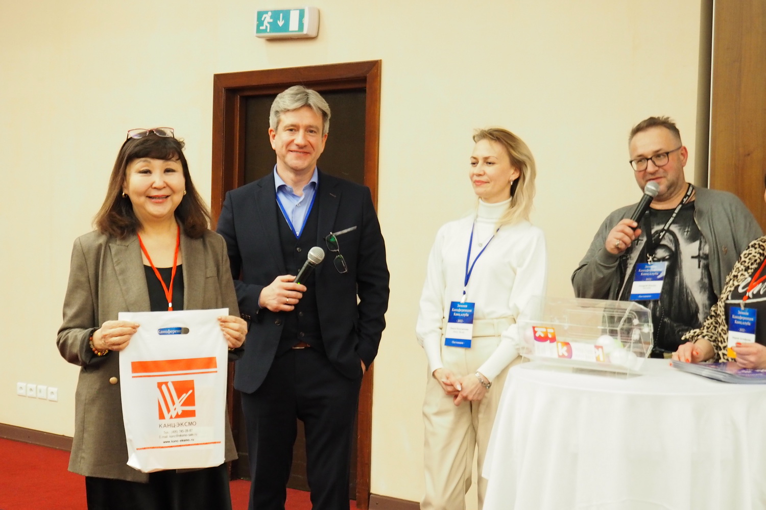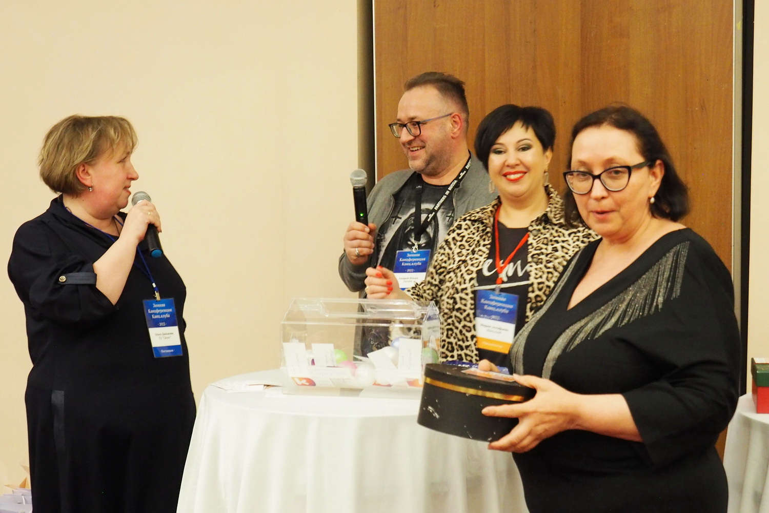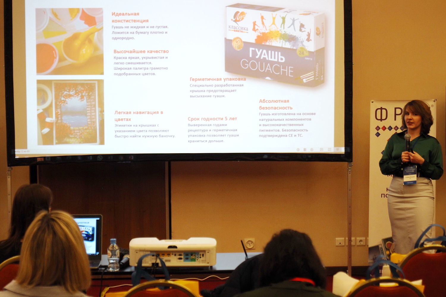 Ведущие конференции — известный в узкий кругах канцелярский гуру Андрей Ильин (Durable) и канцелярская инста-дива Мария Астафьева (сеть магазинов «Деловой») заводили аудиторию, выводили на эмоции и контакт. От них звучали приветственные слова к участникам и благодарности спонсорам.
